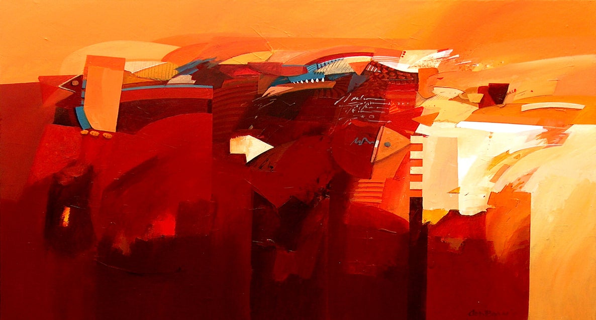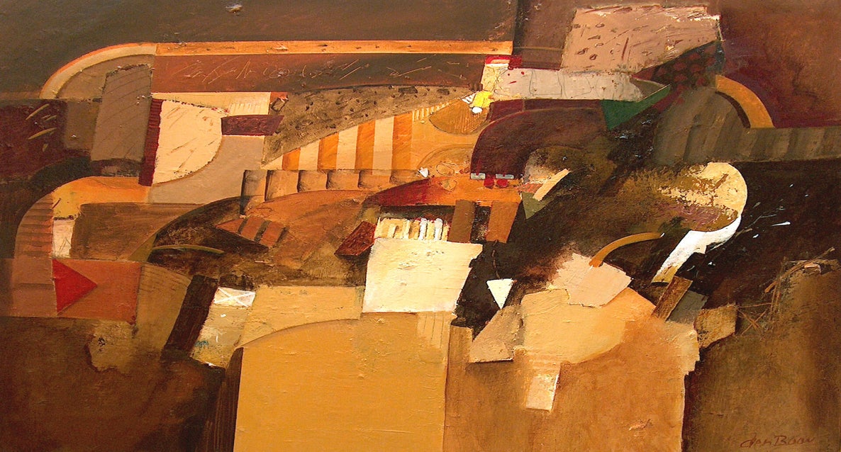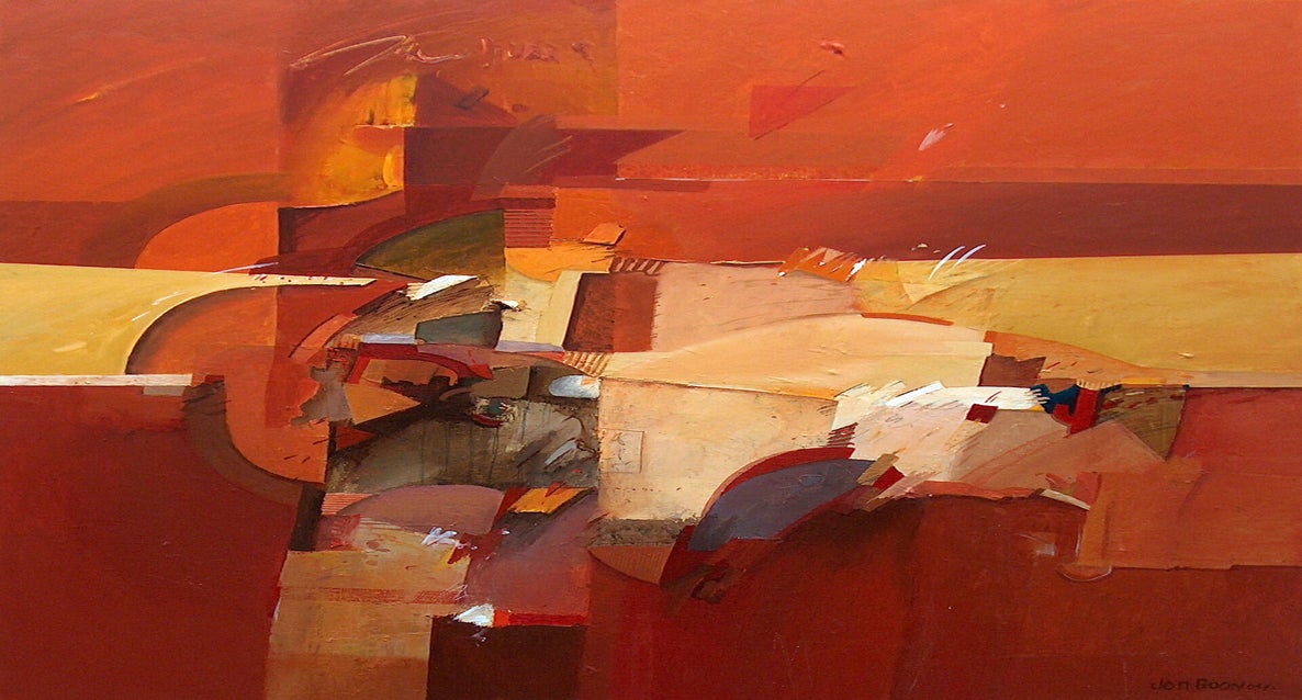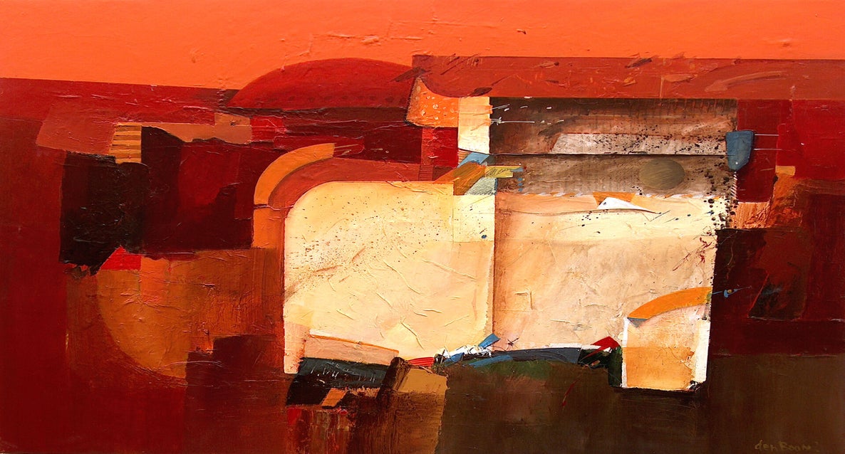 Je drukt je uit via een integer automatisme. Een uitdrukkingswijze waarbij de rede wordt uitgeschakeld en er dus geen enkele esthetische of morele vooringenomenheid is. Een handschrift dat verrassend spontaan oogt maar gebalanceerd is in tint en vorm. En juist het afwegen van een compositie is nodig, wil je tot zulke oogstrelende schilderijen komen als Den Boon maakt. Het vergt tijdens het schilderen een constantwegen en overwegen. Hou de energie in toom maar durf op het juiste moment toe te slaan. De in 1941 in Gouda geboren Theo den Boon heeft vanaf 1968 elk jaar wel enkele tentoonstellingen door heel Nederland gehad. Ook exposities in Frankrijk, Duitsland, Belgie en op Amerikaanse beurzen was zijn werk te bewonderen. Hij was zeer productief, heeft naast zijn vrije werk ook opdrachten voor scholen en bedrijven uitgevoerd en was zeer begaan met zijn werk. Hij lijstte ook alles zelf in.