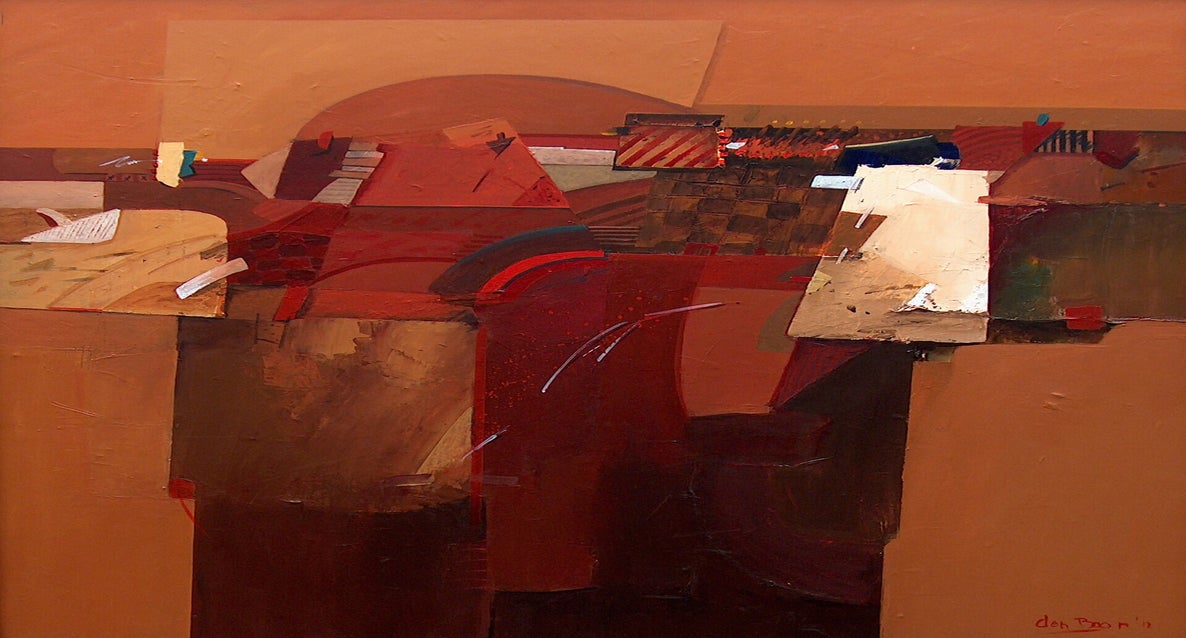 Wie een compositie van Theo den Boon ziet, weet dat er geen vast omlijnd plan aan ten grondslag ligt. Deze schilderijen kunnen de schilder nooit helder voor de geest hebben gestaan. Het is als met de dichter die blanco op een maagdelijk vel papier staart en de zinnen laat opwellen. Deze doeken moeten onstaan tijdens het werken.